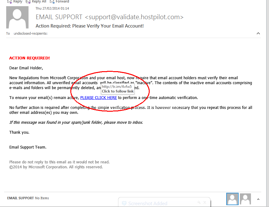 Companies like Microsoft, Ebay, Paypal and your bank, will NEVER email you asking you to reset your password.